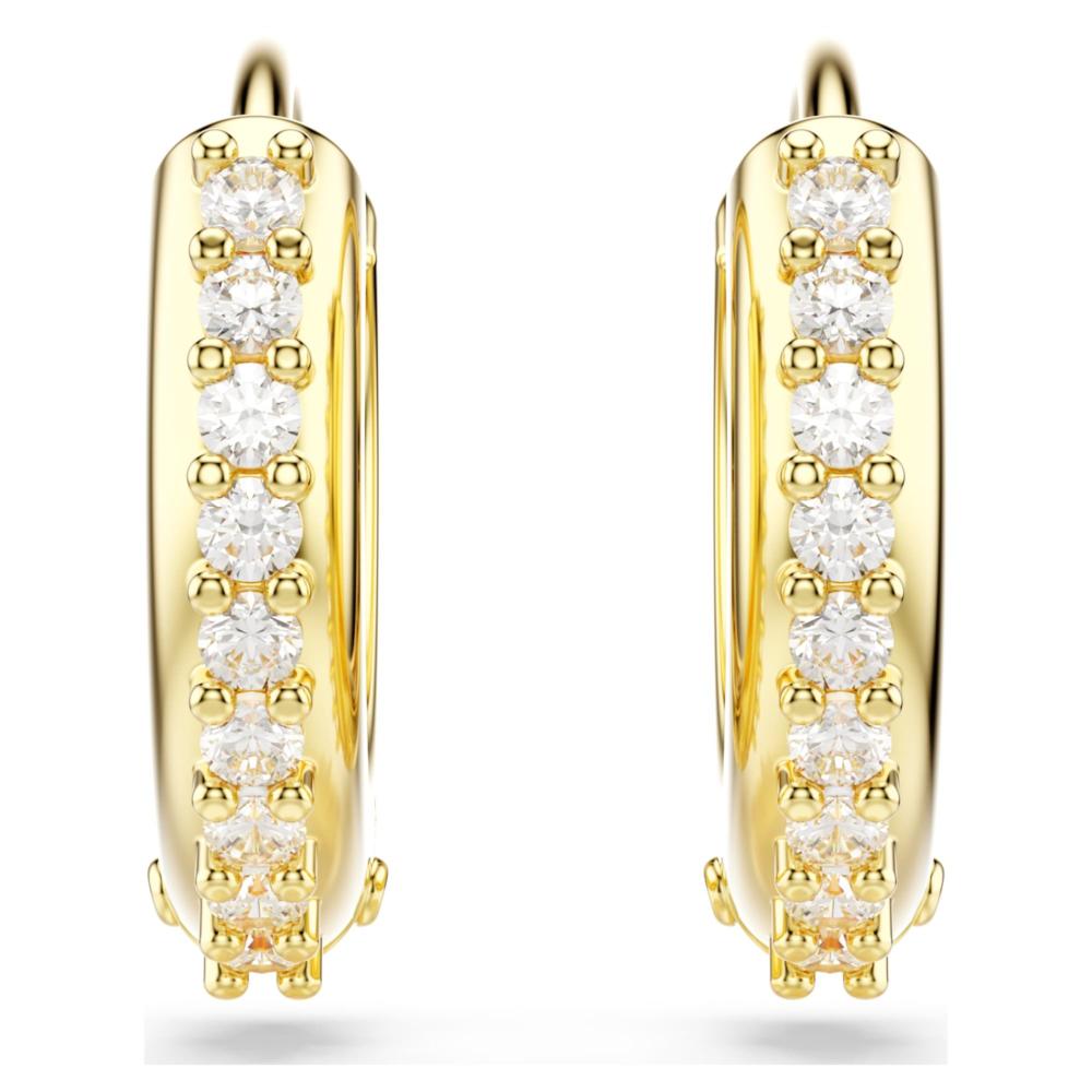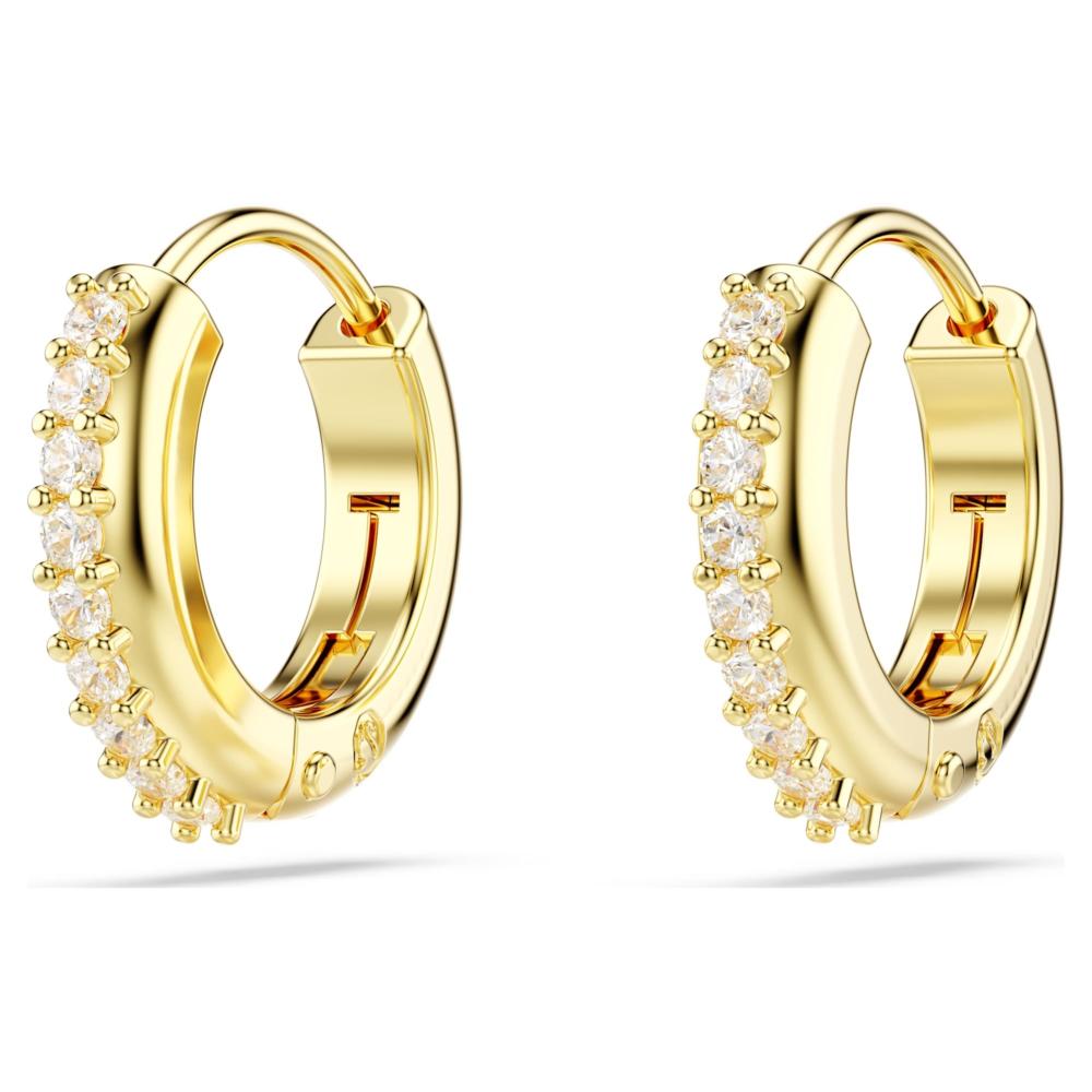révélez votre style avec ces mini-créoles brillantes. ces boucles d’oreilles percées au doré à l’or 18 carats (750/1000) sont ornées de swarovski zirconia incolores, sertis griffes sur la section extérieure. une manière naturelle d’insuffler à votre look un éclat instantané et raffiné.
