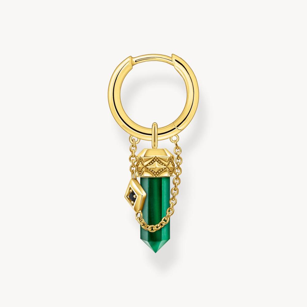 - Créole individuelle en argent sterling 925 recyclé plaqué or 18 ct, agrémentée d’une breloque en cristal de malachite verte